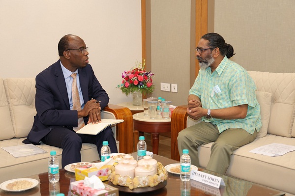 Delhi/Ranchi: नई दिल्ली स्थित झारखंड भवन में मुख्यमंत्री हेमंत सोरेन से विश्व बैंक के भारत स्थित कंट्री निदेशक ऑगस्टे तानो कौमे के नेतृत्व मंम एक उच्चस्तरीय प्रतिनिधिमंडल ने शिष्टाचार मुलाकात की. इस दौरान झारखंड के आर्थिक विकास, गरीबी उन्मूलन और विभिन्न विकास योजनाओं को लेकर गहन चर्चा हुई. विश्व बैंक के निदेशक ऑगस्टे तानो कौमे ने मुख्यमंत्री मंईयां सम्मान योजना की विशेष रूप से सराहना करते हुए कहा कि यह योजना राज्य के कमजोर वर्गों को सशक्त बनाने की दिशा में एक महत्वपूर्ण कदम है. उन्होंने झारखंड सरकार द्वारा ग्रामीण आर्थिक विकास, अक्षय ऊर्जा, पर्यटन, उत्पादन, कृषि, शिक्षा और प्राकृतिक संसाधनों के क्षेत्र में किए जा रहे प्रयासों की भी सराहना की.