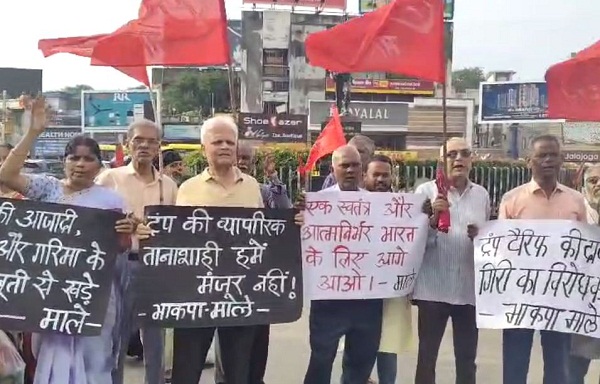 अमेरिका के प्रेसिडेंट डोनाल्ड ट्रंप द्वारा भारत पर 25 फीसदी टैरिफ लगाने के बाद भाकपा माले आक्रामक है. शुक्रवार को देश भर में इसके खिलाफ प्रदर्शन किया. झारखंड की राजधानी रांची में भी भाकपा माले के नेताओं ने प्रदर्शन किया. एक्टू के महासचिव शुभेंदु सेन ने केंद्र सरकार पर हमला करते हुए कहा कि केंद्र की विदेश नीति फ्लॉप हो चुकी है. अमेरिका द्वारा लगाये गये टैरिफ का असर भारतीय अर्थव्यवस्था पर पड़ेगा.