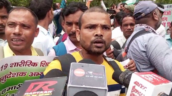 जेडीयू कार्यालय के बाहर शिक्षा स्वास्थ्य अनुदेशक का हंगामा