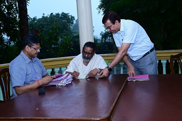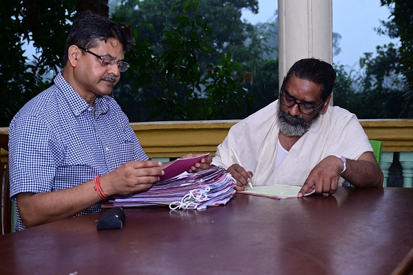 सीएम हेमंत सोरेन अधिकारियों को दे रहे दिशा निर्देश